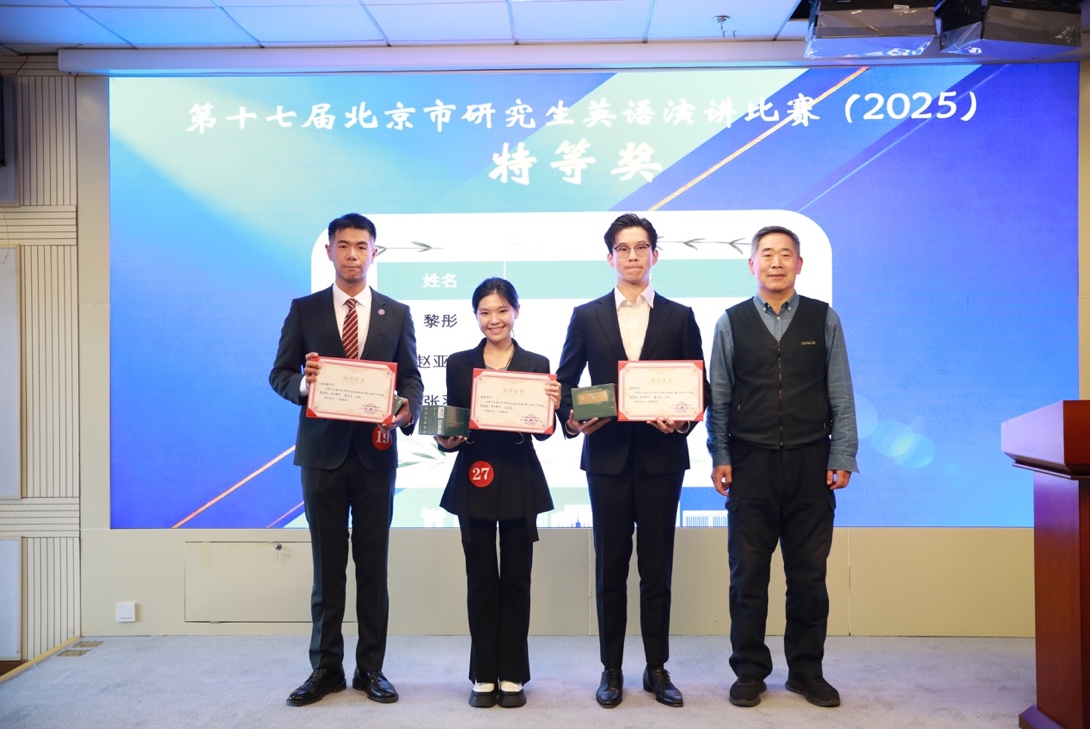 11月29日上午,第十七届北京市研究生英语演讲比赛决赛在北京林业大学落下帷幕。清华大学2025级公共管理学院硕士生黎彤、赵亚巍荣获特等奖,法学院2025级硕士生杨韧通荣获二等奖。语言中心教师董焱宁、付林荣获优秀指导教师奖。