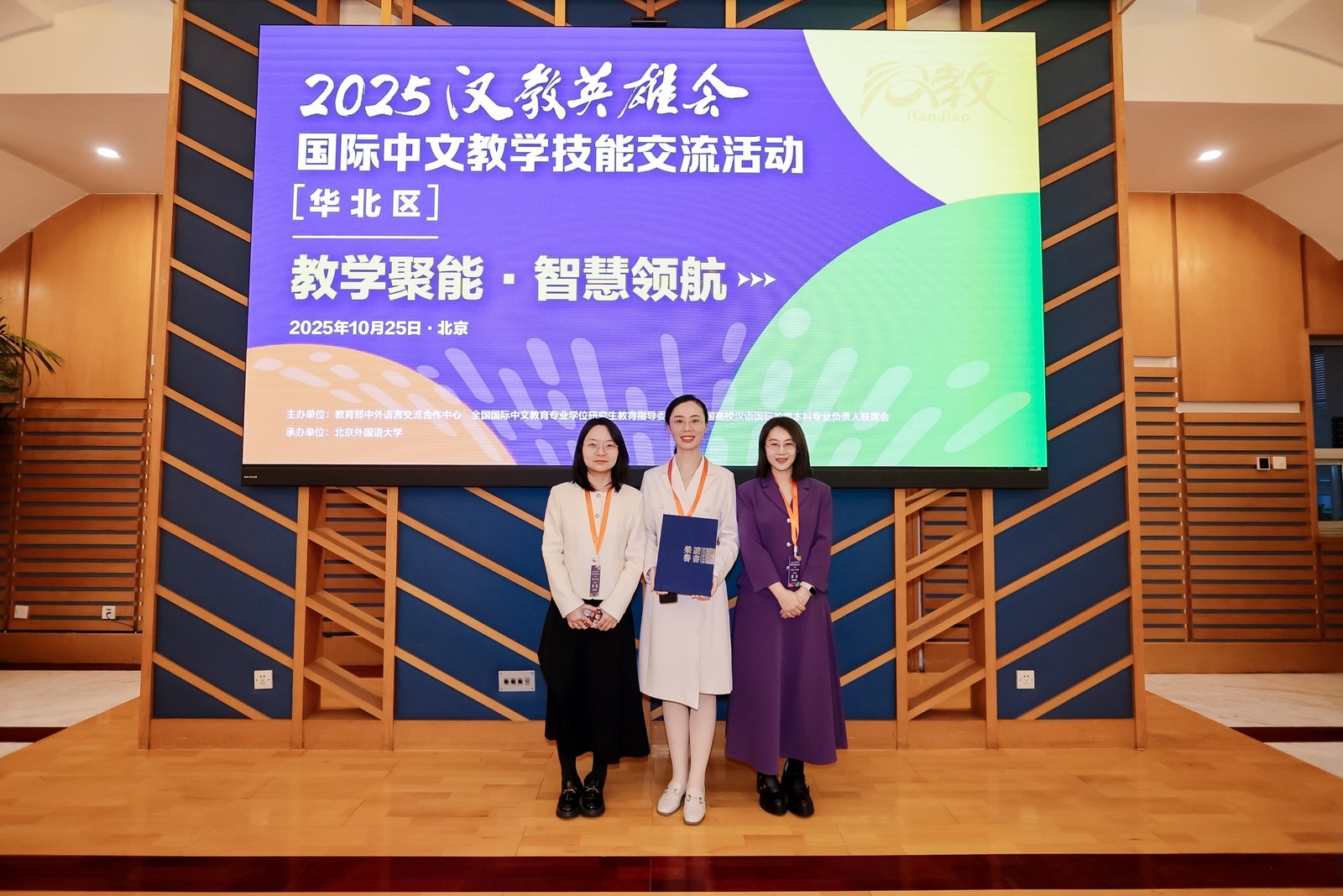 近日,2025“汉教英雄会”国际中文教学技能总交流活动在京落下帷幕。清华大学语言中心对外汉语教研室三位教师组成的代表队,凭借精心的教学设计、出色的说课展示,先后荣获华北区“最佳教学设计团队”和全国“最佳智慧教育团队”两项荣誉,充分展现了我校在国际中文教育领域的扎实积累与创新活力。